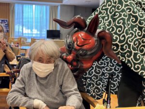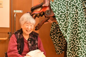 勇壮な獅子の舞に、利用者さまからは笑顔や拍手があふれ、